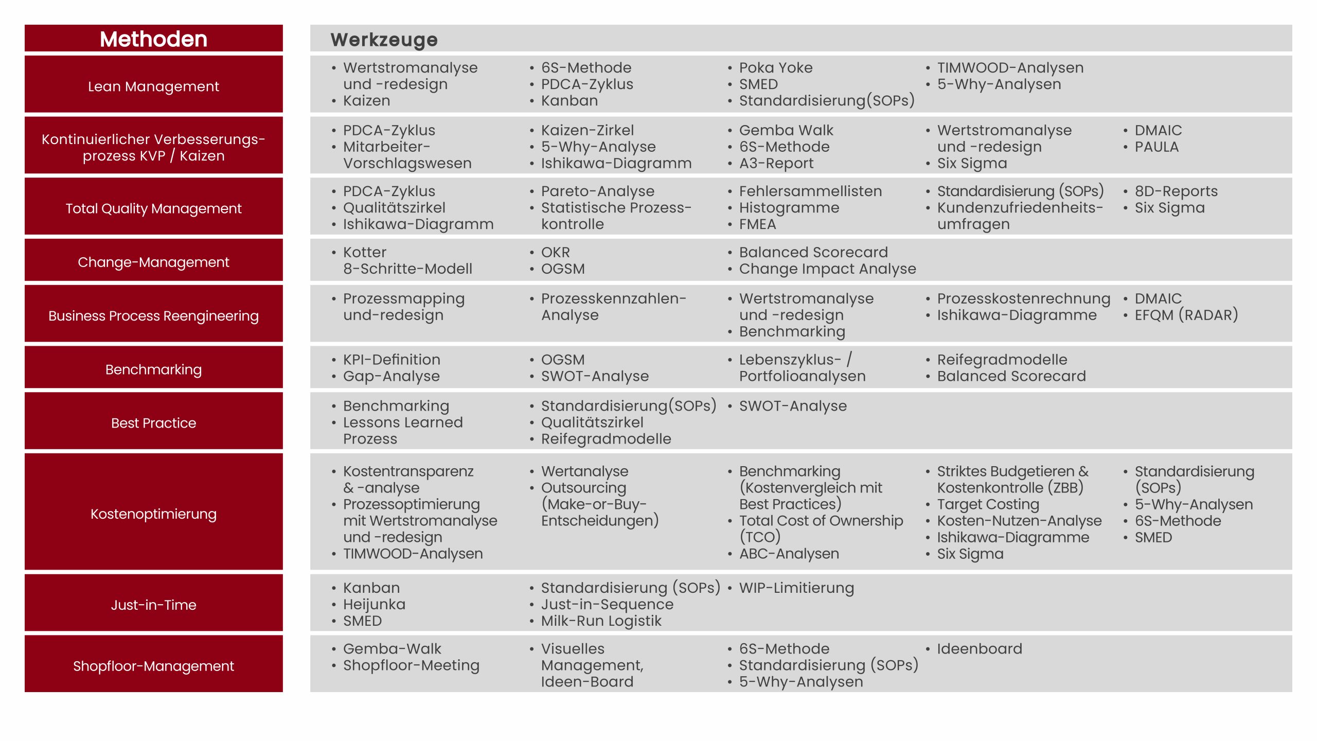 Methoden und Werkzeuge zur Erreichung von Operativer Exzellenz
